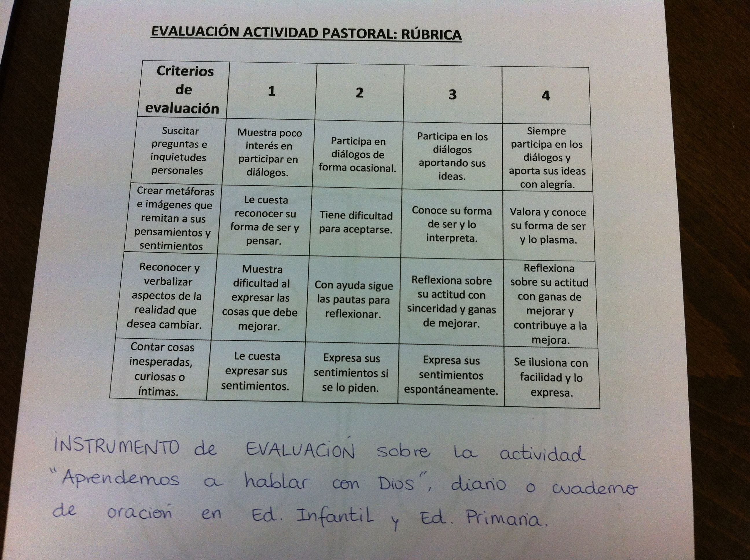 Pastoral 27, 28 mayo: Evaluación actividad pastoral: Rúbrica