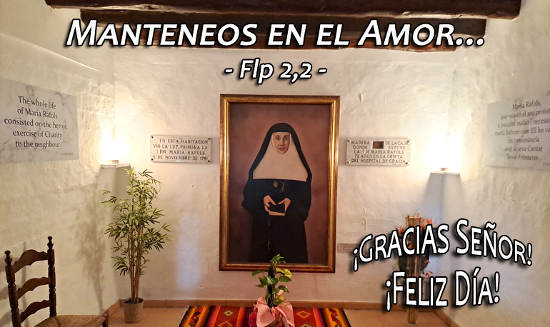 Que, como Madre María Ràfols, seamos hogar cálido, mirada acogedora, gesto fraterno, hacedores de paz y presencia generadora de aliento y esperanza entre nosotros y para tantas personas que lo necesitan.