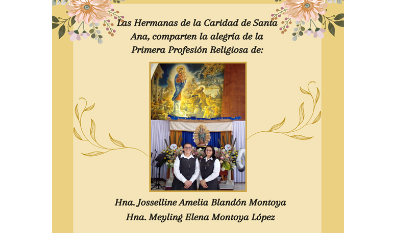 El día 8 de diciembre de 2025, las Novicias Josselline Amelia Blandón Montoya y Meyling Elena Montoya López, de la Provincia de Santa Ana, harán sus Primeros Votos en la Capilla del Inmaculado Corazón de María, en Llorente de Tibás (San José – Costa Rica), a las 10,00 h.
